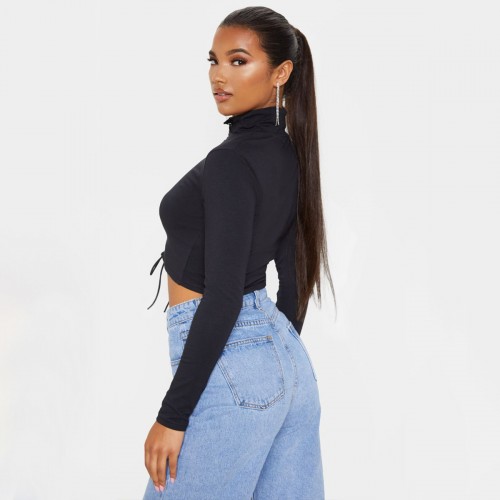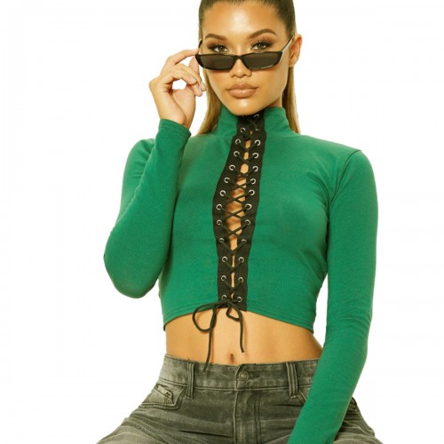 trade tight fitting front bandage women's summer bottoming shirt with exposed navel and slim fitting bottoming women