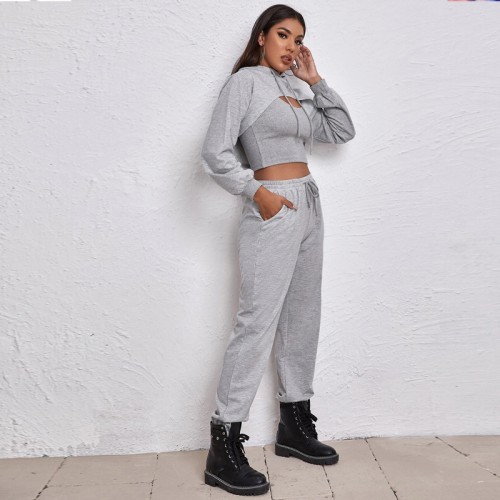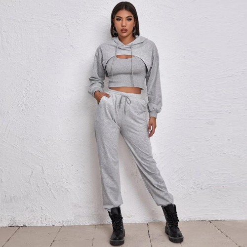 Women's Spring Hoodie Loose Vest Sweatpants Slow Running Three piece Set