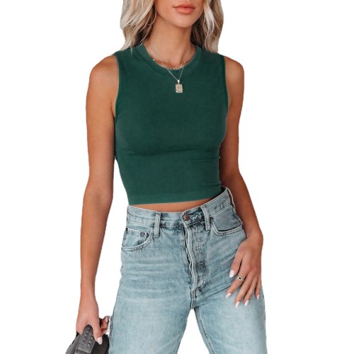 Fashion Solid Round Neck Sleeveless Women's Shirt
