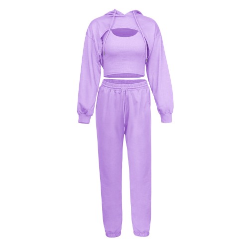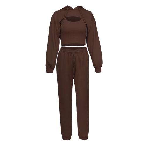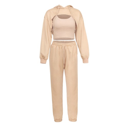 Women's Spring Hoodie Loose Vest Sweatpants Slow Running Three piece Set