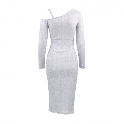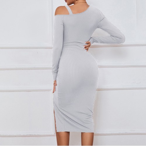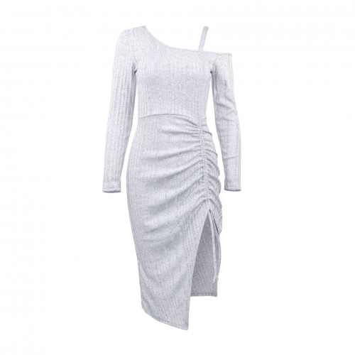 women design sense Irregular off shoulder dress Sexy waist tuck wrap skirt